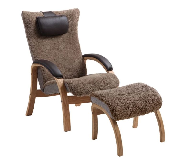 Hem > Innemöbler > Fåtöljer > Easy fåtölj med fotpall i fårskinn