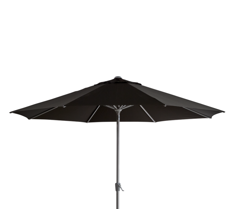 Abriola har en silverfärgad aluminiumstång i två delar med en diameter på 48 mm. Stången är utrustad med en vev och en automatisk tiltfunktion, vilket gör det enkelt att vinkla parasollen. Parasollens tak är tillverkat av 250-grams lösningsfärgat tyg, komplett med en ventilationsöppning, och stöds av 8 ribbor.