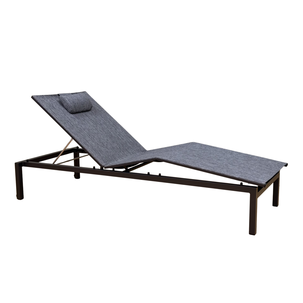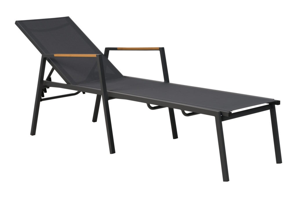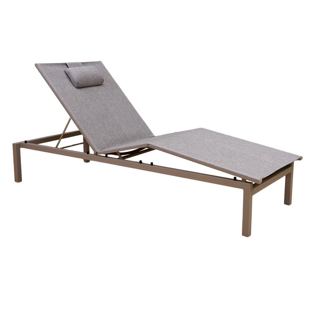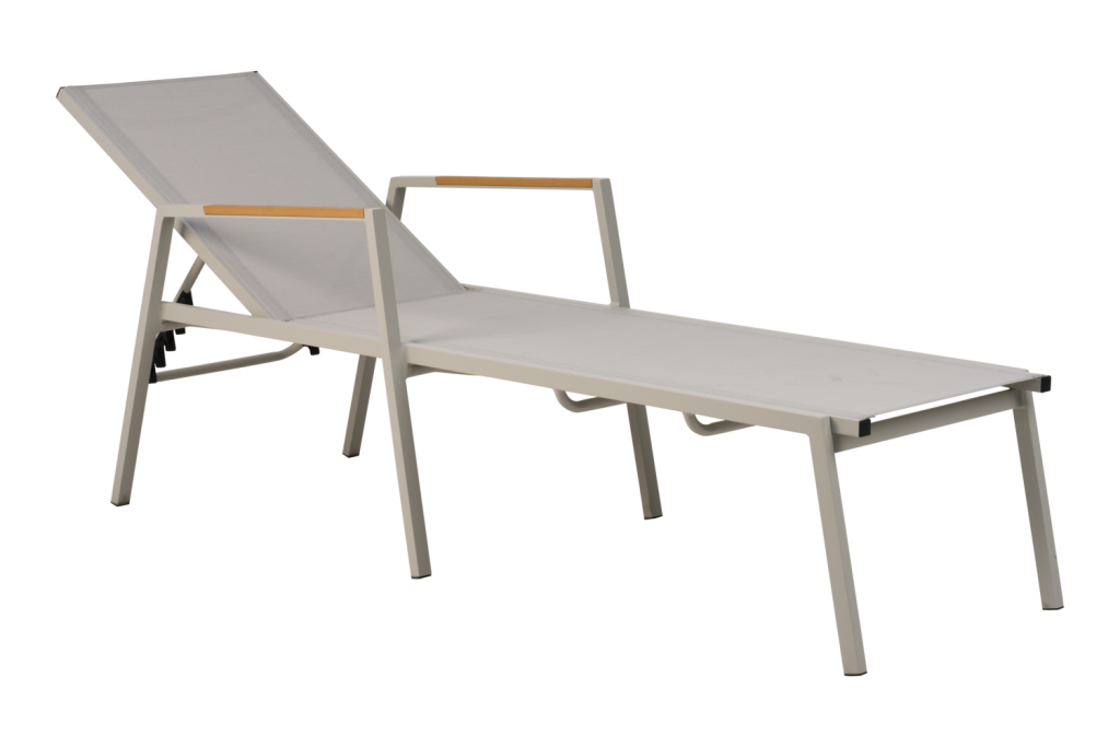 Solsäng i vit aluminium och textilene. Med hjul. Dyna köpes separat.