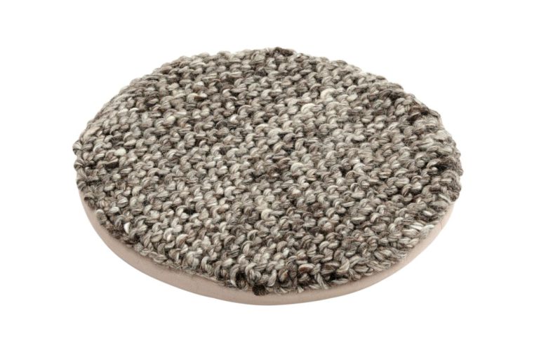 Dekorativ, flätad sittdyna i 100% ullgarn i en grå kulör med matchande baksida i 100% bomull. För ökad sittkomfort och design-känsla.