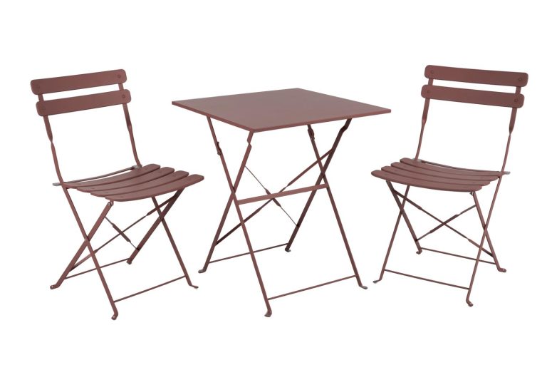 Fällbart set med bord och stolar i läckra färger. Alla delar i lackat stål.