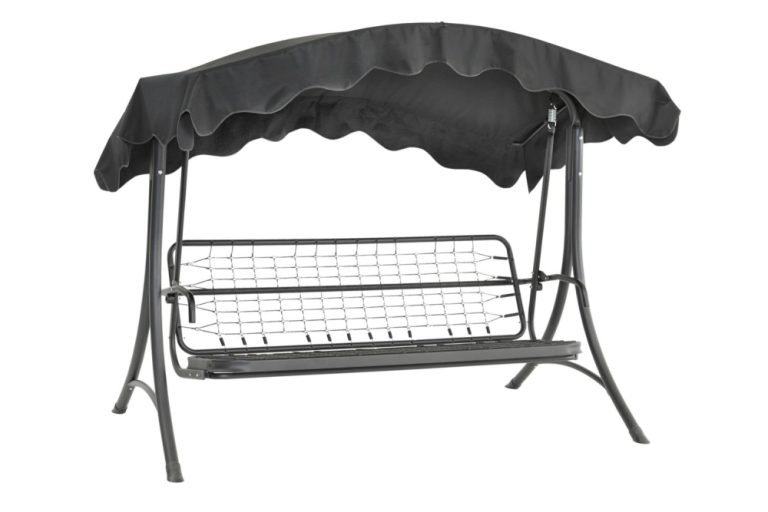 En hammock med hög rygg och bekväma armstöd. Stativet är förzinkat och lackerat. Inkl. tak.